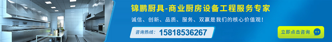 錦鵬廚具是一家專業(yè)從事星級酒樓、食堂、學校、餐廳、工廠、機關、醫(yī)院等商用中央廚房設備工程設計售后維修保養(yǎng)為一體的現(xiàn)代化企業(yè),廚具設備廠家。承接不銹鋼廚房廚具、酒店廚房設備工程、不銹鋼廚房設備工程、商用廚房工程設計及制冷制熱系統(tǒng)工程。業(yè)務范圍覆蓋廣州、深圳、東莞、佛山、惠州等地,公司依據(jù)客戶要求和現(xiàn)場實際情況精心設計,合理安排,創(chuàng)造節(jié)能環(huán)保優(yōu)質產(chǎn)品和熱情服務。